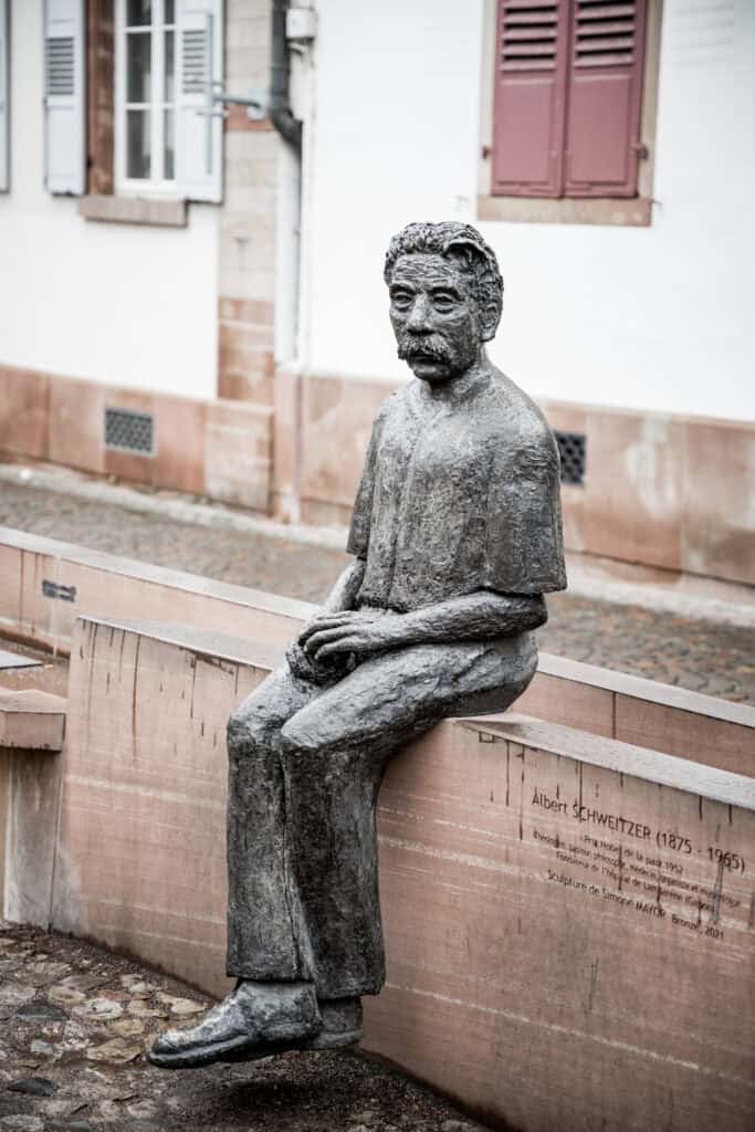Albert Schweitzer, Arzt, Philosoph, Theologe und Friedensnobelpreisträger, wurde nicht weit von Straßburg in Kaysersberg geboren. Die Statue in Straßburg ehrt ihn für sein Lebenswerk, besonders für seinen Einsatz in Afrika. Weniger bekannt ist, dass Schweitzer auch ein talentierter Organist war – er restaurierte sogar die berühmte Orgel der Thomaskirche in Straßburg. Sein humanistischer Ansatz „Ehrfurcht vor dem Leben“ hatte hier in der Stadt, die zwischen Deutschland und Frankreich hin- und hergerissen war, eine besondere Bedeutung.